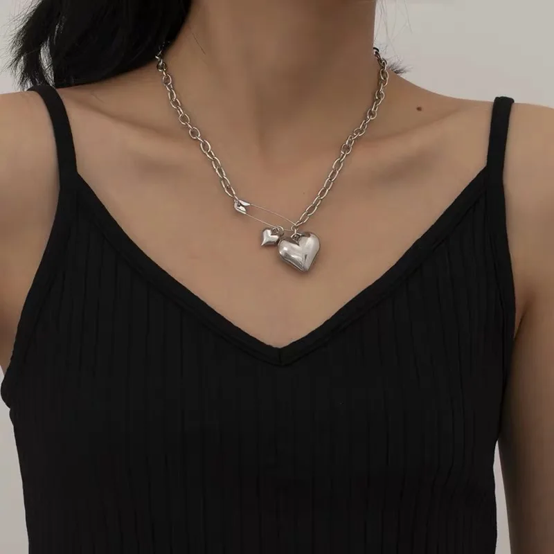 Name: Corazón de melocotón Pin collar mujeres amor Pin collar punk de amor de plata Pin colgante de las mujeres collar de cuello