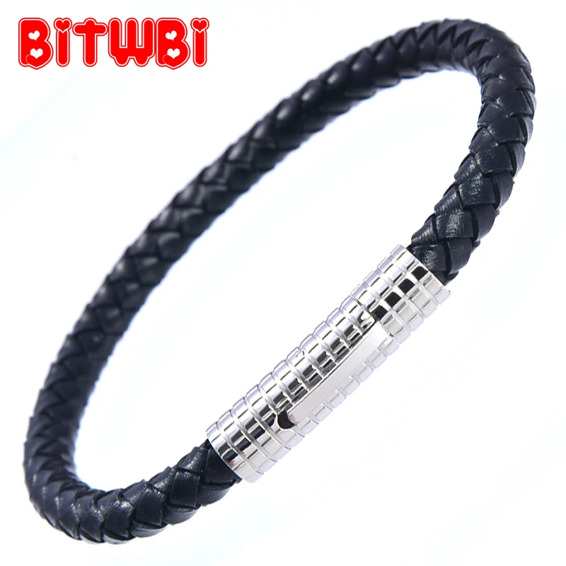 Name: Llattice suave de acero inoxidable de cuero Real imán negro de cuero de vaca de la cuerda pulseras para las mujeres de estilo masculino Bracele joyería